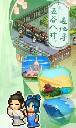 1、我在长安买块地画面采用了复古又可爱的像素画风,每一块砖瓦、每一片树叶都透着浓浓的古风韵味;