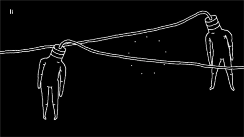 当我们完成之后,下面一个画面就会切换到两个头直接插着插头的人,此时我们随便拉动一条线就会发现两个都被拉动,似乎在说这一条线是如同命运的红线一般,让它们慢慢的彼此靠近。