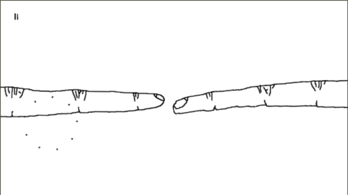 最后,两个手会重新出现,但是此时并不会如同一开始那样,而是会抓住其中一个手的手指,被抓住的抛了一抛后发现自己的手指断下了。
