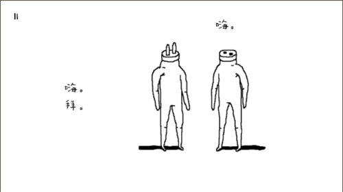 当那个人爬起来后,会走在一个队列之中,似乎在告诉我们它试图在融合进社会这个大群体中,挨个人往右点击即可完成这个画面。