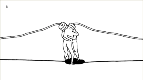 当达到一定距离后,两个人就会互相抱着,此时拉动线条就会把插头拉开,然后两个人突然发现自己是可以互相组成一个插座的。