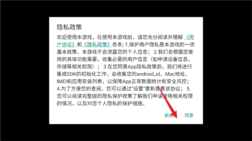 1、游戏打开选择同意