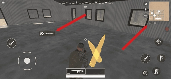 5、刚进入游戏的地方为我方区域,你可以根据地图位置进行弹药补给、使用汽车、补血等等,例如补弹药,在弹药位置后点击get ammo即可补给。