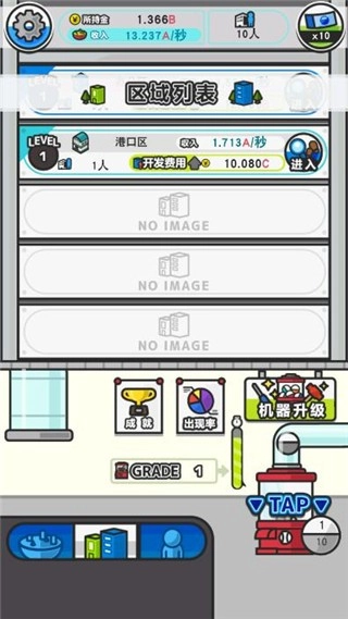 4、扭蛋城市共有10个区域,每个都能不断升级扩建。