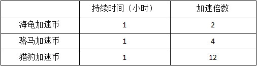 玩家点击进入商店,在生产界面的右边就可以看到加速选项。点进加速币选项之后,玩家就可以看到一共有3种加速币,分别是海龟加速币、骆马加速币和猎豹加速币。