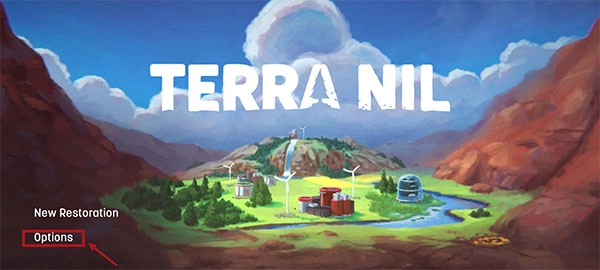 1、第一步先启动伊始之地游戏,进入到主界面后,找到左下角的“Options”选项并点击。