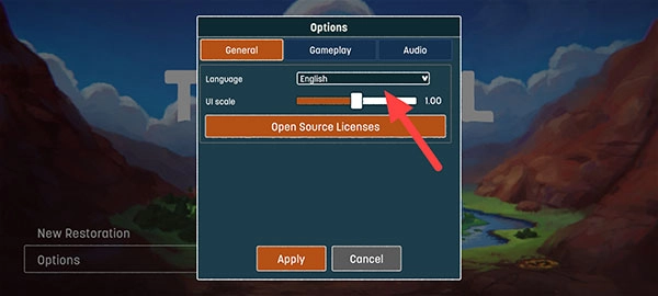 1、进入游戏,设置语言,点击“新恢复之旅(New Restoration)”按钮选项开始游戏;