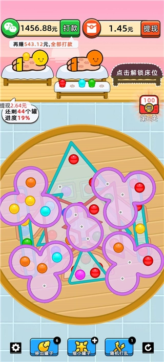 2、点击之间,巧妙搭配色彩,将罐子归位,但需留心槽位空间,避免游戏失败的风险。