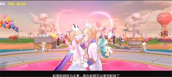 游戏中的结婚系统还是比较亲民的。银戒指日常任务产出,16个银戒指合成1个金戒指即可结婚。急用可以商会购买,30W一个银戒指。结婚需要男女组队亲密度大于500点,所以开服就要订好结婚目标刷亲密度。组队双方任意一人求婚即可。拒绝的话求婚人会得到一张好人卡(就一个成就)。结婚是有评分加成的,婚宴的蛋糕和箱子能开出远古藏宝图。结婚要让公会里的人帮忙刷浪漫值,999点即可。喜糖可以附加幸运,但要记得夫妻互送,本人喜糖是吃不了的。另外结婚还会送一套结婚礼服时装(如图,非永久),本萌新是奔着婚礼时装去的!