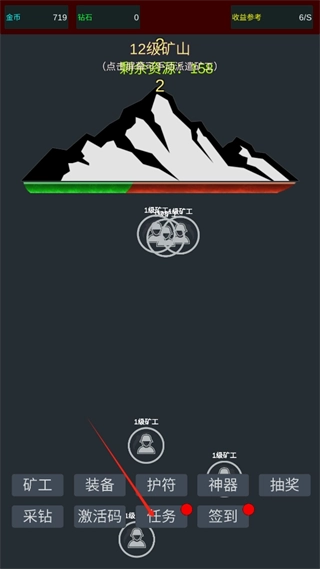 1、玩法围绕多线养成系统展开,包含矿工、装备、护符与神器的全方位提升。