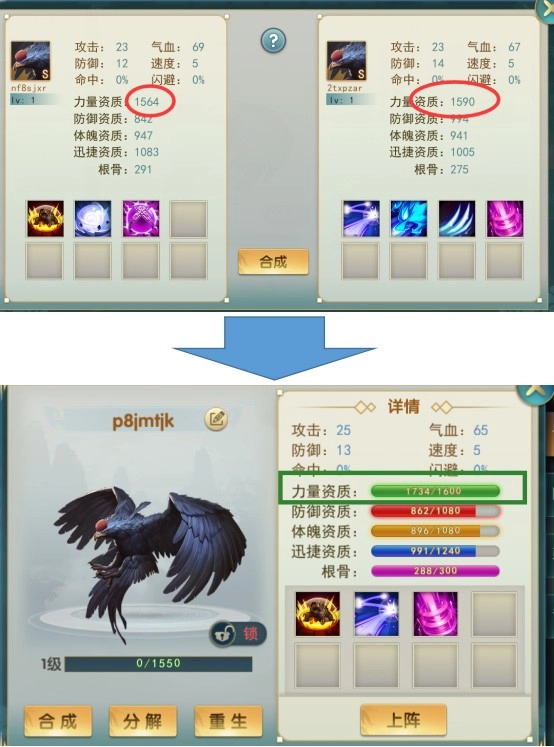 4、合成所得宠物的根骨由合成得到的宠物品阶决定;