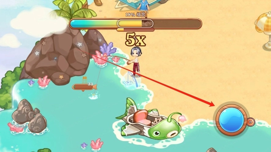 4、点击右下角按钮进行钓鱼;
