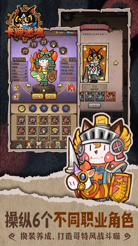 《卡牌迷境》是一款以猫咪为核心元素的卡牌策略游戏。游戏采用手绘风格构建出独特的奇幻世界,玩家初入游戏时,需从六个各具特色的猫咪职业中选择其一开启冒险。随后将沿着主线剧情推进,通过击杀怪物、获取装备、提升等级来逐步完成游戏任务。此外,游戏设计了丰富多样的关卡,每个关卡的怪物都拥有独特属性,玩家需要合理搭配手中的卡牌,这将成为突破困境、化险为夷的关键策略。