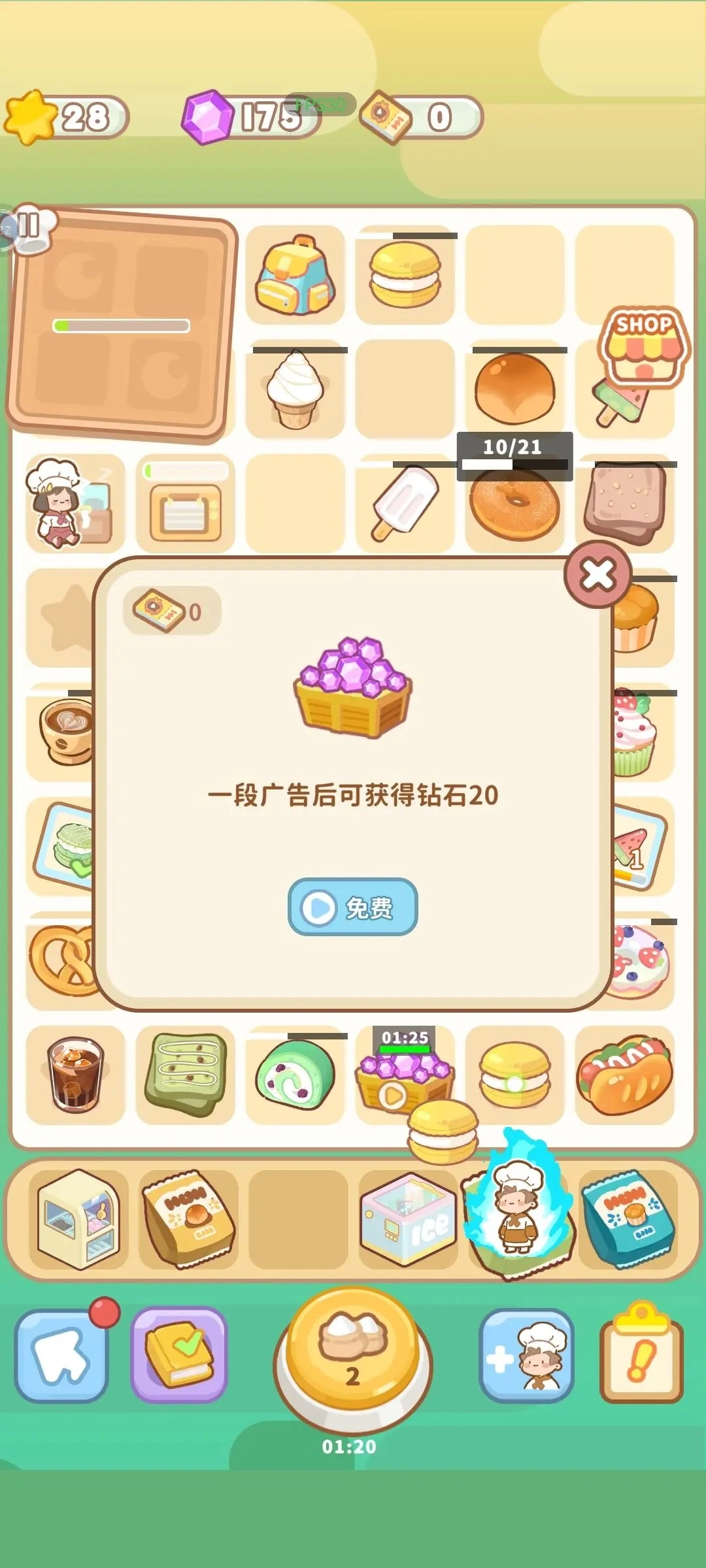 5.一定要看广告或者使用广告券的地方:100面粉的广告、商店里钻石的广告、三选一的广告、所有钻石宝箱、任务增益buff、厨师页面的2级袋。还是那句话,优先购买广告券。