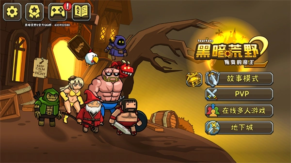 1、双击打开黑暗荒野2游戏,我们可以看到四个选择,分别是故事模式、地下城、多人游戏、地下城,选择多人游戏;