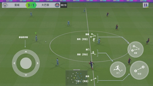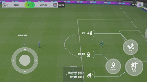 对于双摇杆类型的操作模式,大家肯定不会陌生,大部分的游戏采用的都是这一类型的操控方式,双手操作会更加灵敏一点,左侧是简单的方向盘,右侧则是各种花式进球的操作,点击一下就可以轻松完成铲球、压迫、加速等不同的花样,这些快捷键位的组成,让进球变得更加轻松。