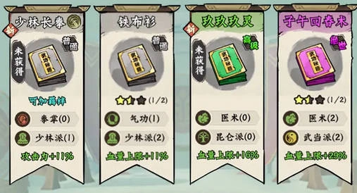 搭配原理:前期,主要依赖少林派的羁绊属性,通过增加血量上限和提升拳掌的攻击伤害加深来进行输出。“中后期,主角获得了神通“子午回春术”,可以同时加强医术和武当羁绊数。这样,主角在恢复攻击、造成伤害后补充血量时,还能显著提高回血效果。