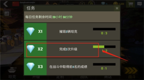 7、完成相应任务即可领取奖励(钻石可用来购买坦克),以升级为例