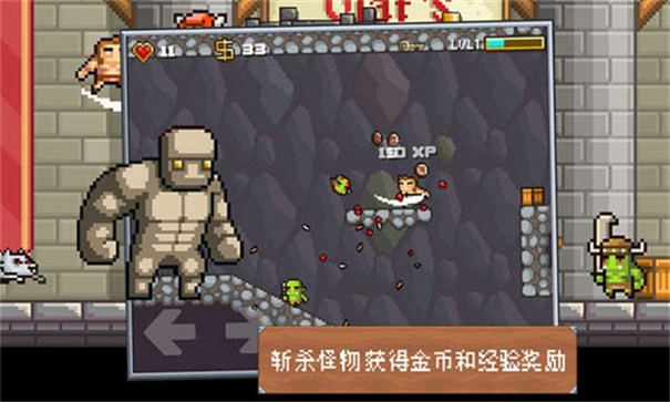 勇士会有血量、金钱和装备等元素,血量归零的时候也会结束战斗,游戏中还会出现很多机关与陷阱,最困难的还是最后的大BOSS。