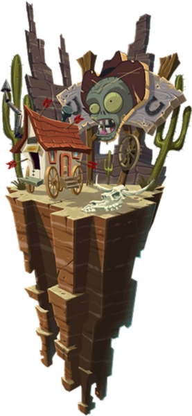 本世界以美国西部某个小镇为背景所创作,地图风格为西部牛仔风格。植物大战僵尸2在2013年7月刚刚上线时,狂野西部为最后一个可开放的世界。