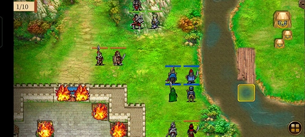 第一回合,三人移动到下图位置,张飞攻击一下,关羽打掉弓兵。