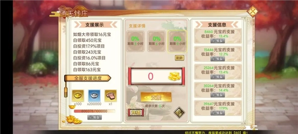 2、通天钱庄,每周一次,VIP越高次数越多,低于三万的投资不需要刷新利率,越刷越亏。