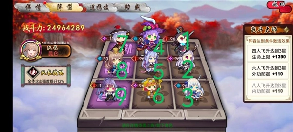 第二轮攻击1.2.3。这一排也是炮灰。建议1或者3放复活卡,这一排有一张复活卡就行了。在还有其他复活卡的情况下,若1放复活卡,那么多的复活卡放在7;若3放复活,那么多的复活放在9。