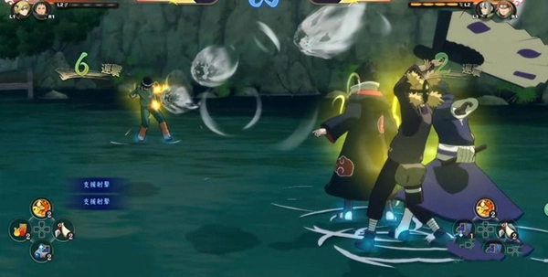 面对一群杂兵时,你可以施展冲击战斗,用体术或忍术一次性解决他们,这种爽快感正是本作被称为“火影无双”的原因。