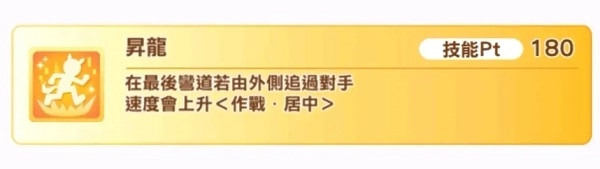 固有很适合本次赛道,开出来很强。三觉中距离提速,五觉升龙也是提速。但不是很稳定,比较看爆发。