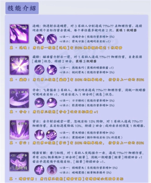 4、穿云:暗器忽视的防御会使伤害量增加很多,单体攻击,但是伤害量很高,所有技能在施放前最好有暗器。