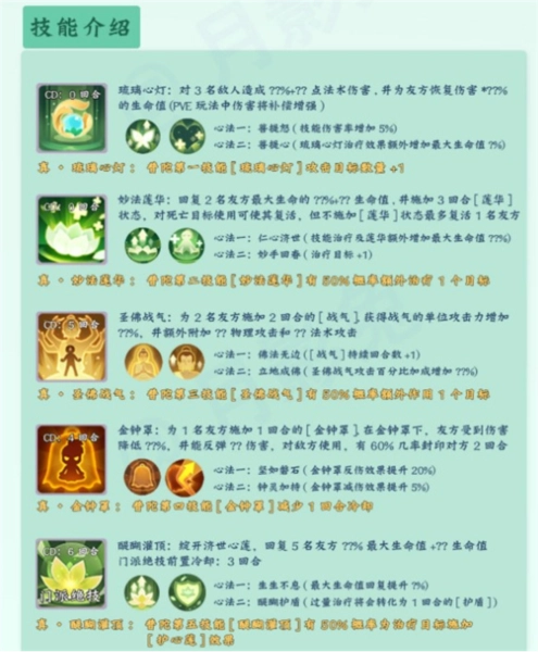 2、妙法莲华:如果目标死亡,可复活目标(复活的目标无法持续回血),对我方多名成员持续回血。群疗+复活,无论pvp还是pve都是团队生存的保证。