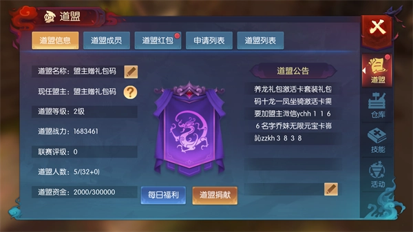道盟是玩家们相互扶持、共同成长的平台。加入一个强大的道盟,不仅可以让你在装备和道具方面获得更多的支持,还能让你结识到志同道合的朋友。在遭遇BOSS抢夺等困境时,道盟成员也会伸出援手,助你度过难关。