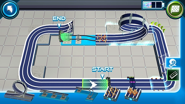 2、进入地图编辑页面,拖动地形模块进行组装和拆解赛道,根据自己喜好可以组装出不同的赛道。