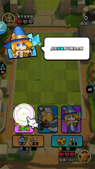 2、进入游戏首先需要购买一个英雄上场。