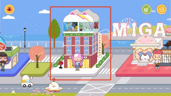1、进入游戏后,你会看到街道上有六座建筑,其中那栋高楼就是我们的公寓,点击它即可。