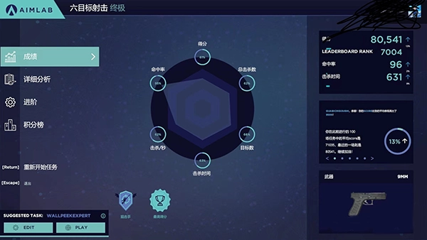 ps:六目标大概在七万五到八万。正常练习前把你的游戏配置导入到aimlab,然后开始练,注意以下三点。