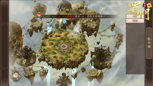 任务接取:进入蜀门乱斗场活动,首先传送到安全区,在安全区内可以看到NPC,和他对话接取任务。任务目标是获取300积分一共2轮。接好任务就能通过传送门到达乱斗区了。
