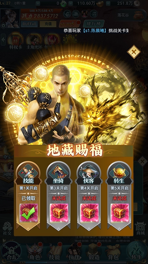 【地藏赐福】:闯关直送百万真充,更是直送地藏礼包,直接送到爽!