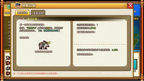 --结算时按照个人积分占联盟总积分比例,计算并发放奖励(奖励最高位联盟奖励的5%)