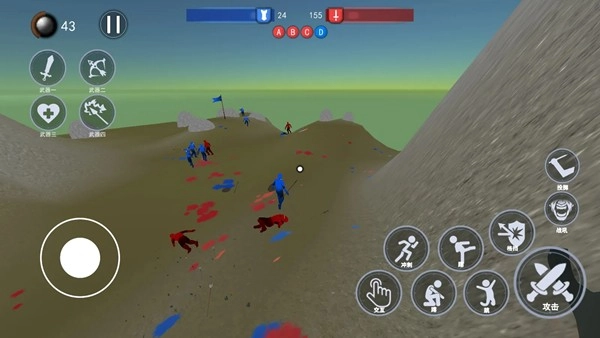 2、构建了丰富的战斗场景,玩家可选择不同武器,如弓箭、刀剑等,在城堡、野外等环境中,与红蓝阵营对手厮杀,感受刺激对战。