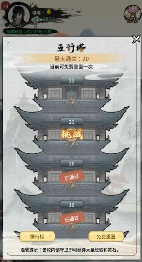 五行塔得等到人物第一天推不动为止,在进行重置,不能为了一时的利快速重置。