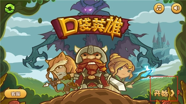 1、打开进入口袋英雄游戏,点击开始;