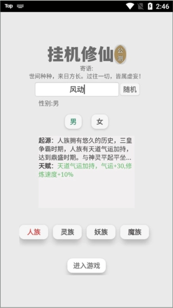 人族:气运+30%,修炼速度+10%