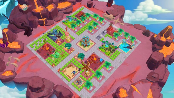 有熔岩滚烫、热浪奔袭的火山浮岛;
