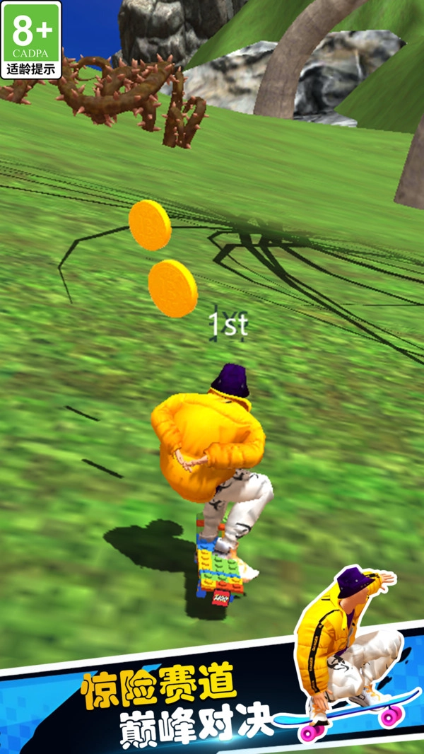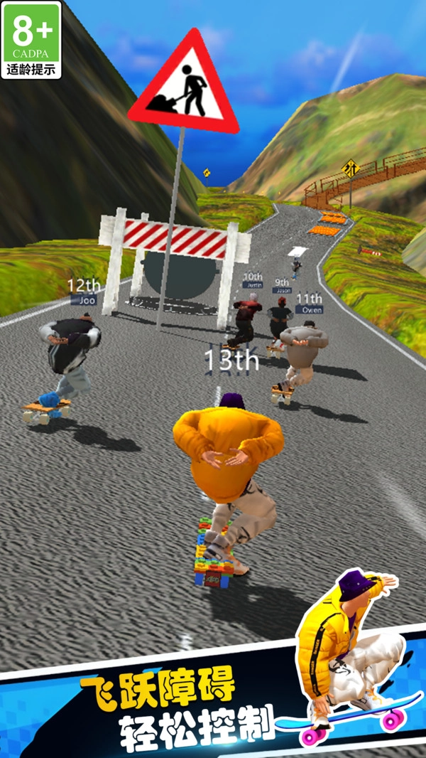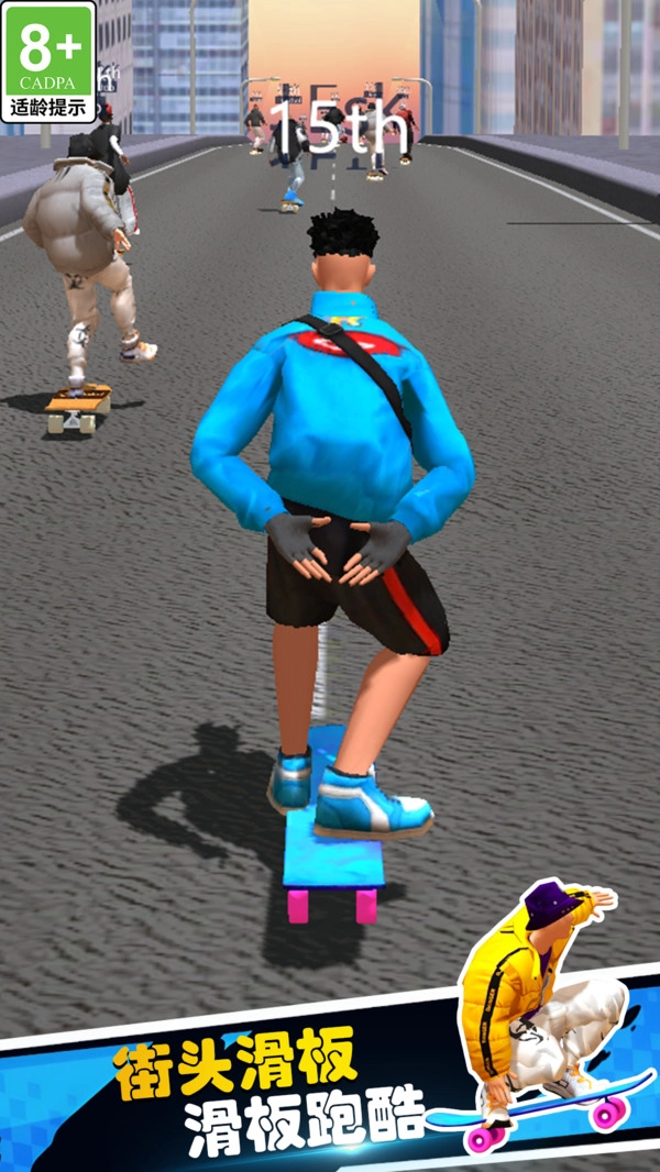 《运动冠军》是一款十分纯正的滑板题材游戏,玩家将操控滑板在错综复杂的场景里穿行。赛道上遍布高速行驶的汽车、散落的碎石、滚动的巨石等各类障碍,需要你及时做出反应巧妙躲避,防止被撞击出局!同时,途中还能收集金币,用来提升滑板的速度性能与操控手感,全力冲刺每场比赛的冠军宝座!