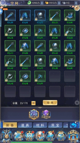 3、在“空间板块”中你可以选择装备、材料进行熔炼出新的道具。