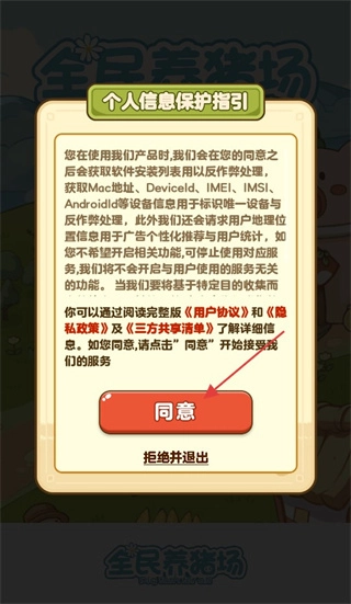 1、安装游戏后,点击同意,关于个人信息保护指引。