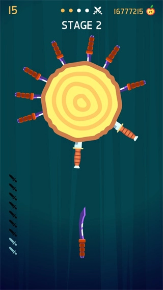 1、规律探索机制考验观察能力,旋转圆盘运动模式存在隐藏规律,巧妙投掷节省飞刀消耗,提升通关效率。