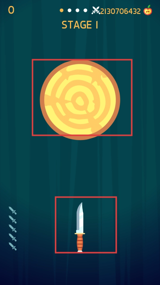 2、观察旋转的圆盘,找准时机扔刀,让刀插入圆盘,避免碰到其他刀。