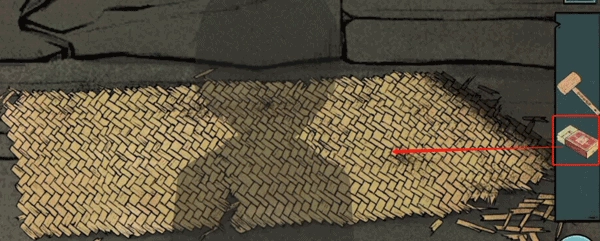 32、进入山洞后使用火柴点燃地上的草席获得草木灰;